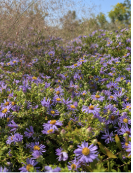 Most species in this genus are native to North America! Their often colorful flowers tend to bloom later than others, with some appearing in late fall. Some asters, such as aromatic asters, grow like a bush, with several stems branching out from its center. These many stems continue to branch off and are capped with blue-purple flowers. |