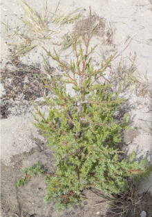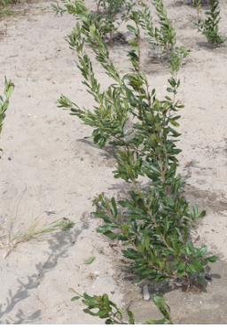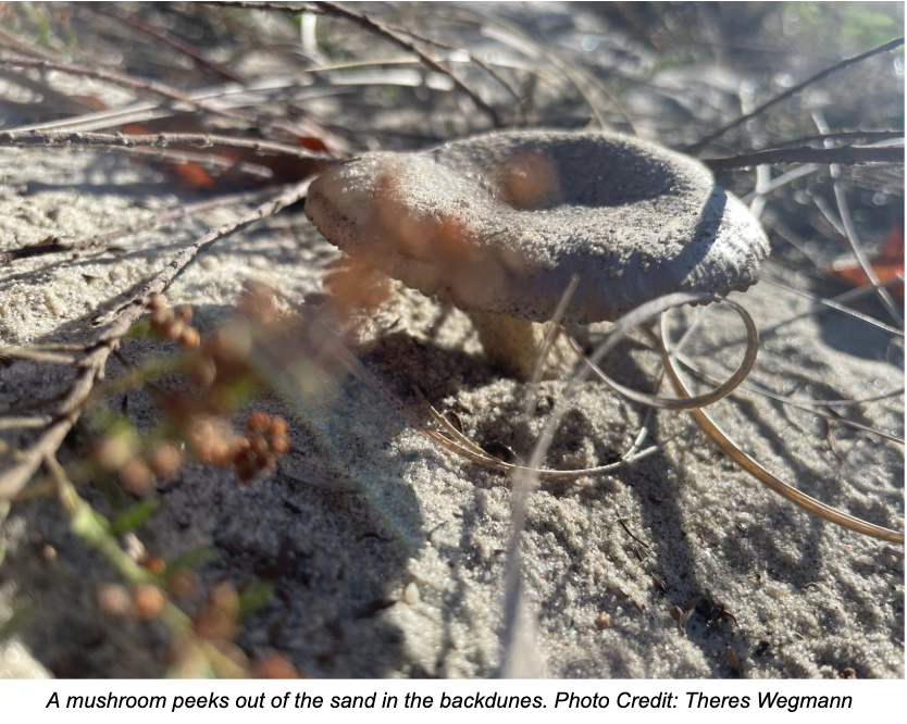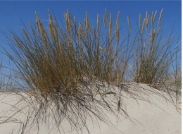 This native grass can grow several feet tall and is known for its wide-spreading rhizomes. Its beige seedheads sway in the wind and hang over shorter dune plants. They are essential for dune structure, as their rhizomes grow deep and spread wide, helping to keep sediment in place. |