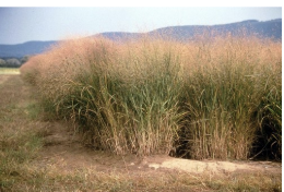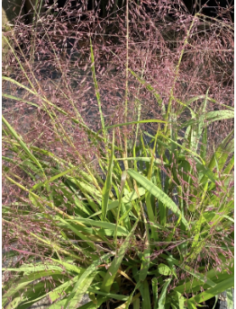 This native grass produces unique, hazy-looking red-purple arrays of flowers. |