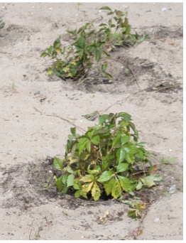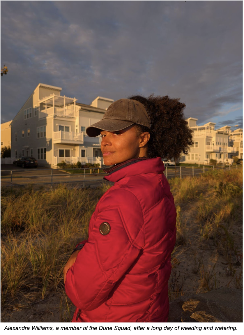 The crowd has been carefully instructed. Determined visitors walk through an open gate onto the sand before they disperse, shovels in hand, shoes slipping against the unstable ground. They quickly set to work, spacing out plants, digging holes, and loosening roots. Others carry water pails from watered sands, waiting eagerly for a refill. In just a few hours, the land is transformed: winged sumacs burst from the ground with vibrant red fruits; eastern red cedars and northern bayberries stand tall, towering over spiny clumps of Carolina rose; Virginia creepers crawl along the sand, reaching out for the dark bark of planted beach plums; the barren space becomes a field of early falltime reds and greens.