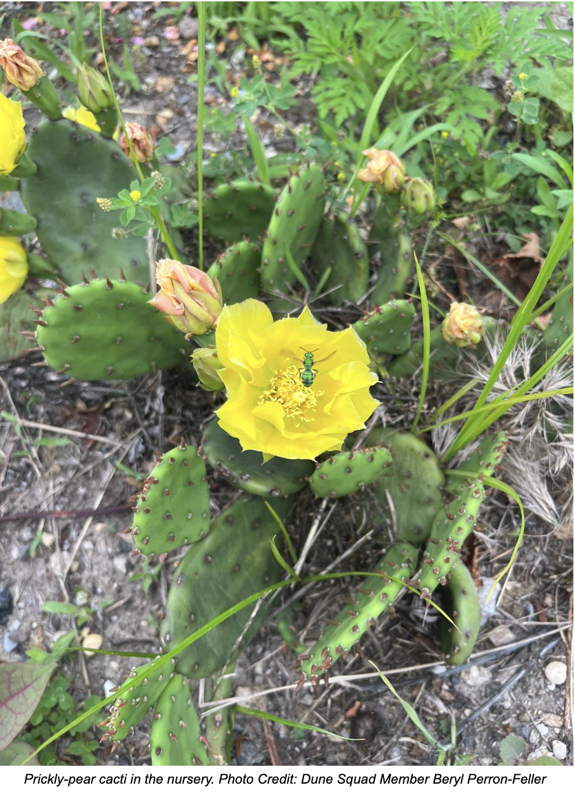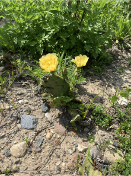 A native cactus with spiny pads and bright yellow flowers. These plants contain an antifreeze chemical that prevents them from freezing during the cold New York winter! |