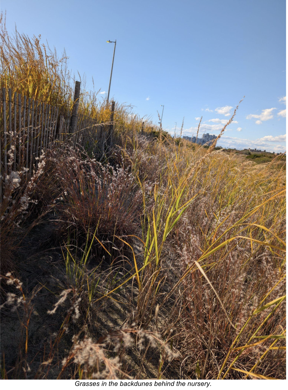 As she pulls up clumps of black medic from the sand, Dune Squad member Katherine Coates reflects on the impact of human development on the landscape: “We are still in a rigorous cycle of overdevelopment… If you think about this land area, before they razed it, it used to be all old growth; old bayberries, crabapple trees, a lot of older trees… There were lots more birds out here before they razed the land again, but it seems like they’re coming back.” Over one hundred former visitors and residents familiar with the bungalows of the past have reminisced about times (and landscapes) long gone on The Bungalows of Rockaway (the website for a documentary of the same name), recalling vivid childhood memories, beautiful yards, and idyllic days by the beach. Setting down not only lines of beachgrass, clumps of switchgrass, purple lovegrass, and little bluestem, the Dune Squad also reintroduces shrubs and trees to a space that has dearly missed them: small bayberries, sumacs, and pines now rest in the sand, eager to follow in the footsteps of their predecessors.