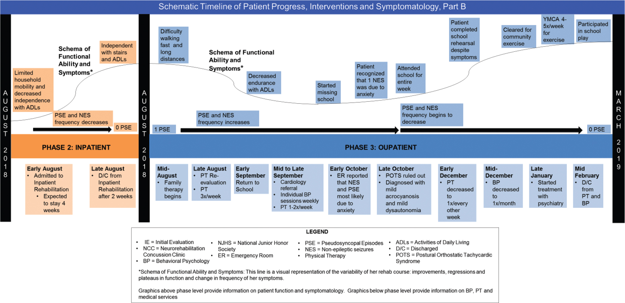 Fig. 1. Part A: Timeline of patient progress, interventions, and symptomatology.